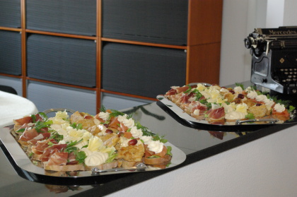"Philipp hat das Catering für unser Kanzleijubiläums- und Umzugsfest für rund 70 Gäste professionell, äußerst lecker und super sympathisch durchgeführt. In unserer recht überschaubaren Kanzleiküche und Mithilfe unserer von ihm schnell und freundlich angelernten fleissigen Mitarbeiterinnen zauberte er ganz gelassen ein kalt/warmes Büffet vom feinsten: zB 4erlei Canapes u.a mit Lachs, Putensteaks, Parmaschinken und Käsecreme, warmes Fingerfood mit